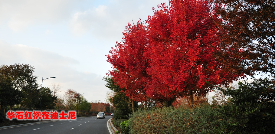 华石红枫以其美丽的红叶,丰满的树冠和优美的树姿赢得了国际度假区的肯定,从2012年始,批量的大规格华石美国红枫精品苗和火焰卫矛、五色彩桂、美国紫薇进入园区扎根,将在开园之际以五彩缤纷的彩叶呈现在游客面前。